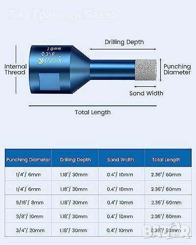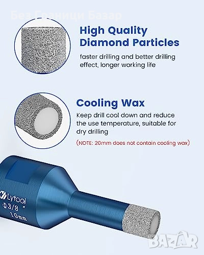 Подходящи за сухо и мокро пробиване (20 мм – само мокро)