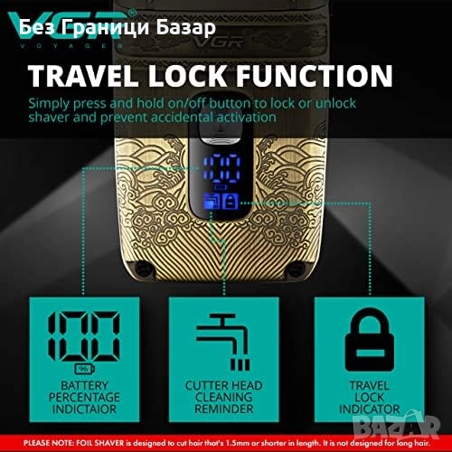 LED дисплей с индикации за батерия, почистване и заключване за пътуване