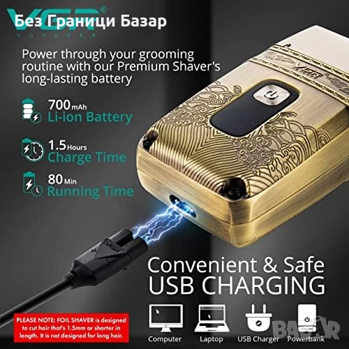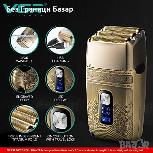 Нова Мъжка фолийна бръсначка VGR за кожа, глава и брада, водоустойчива