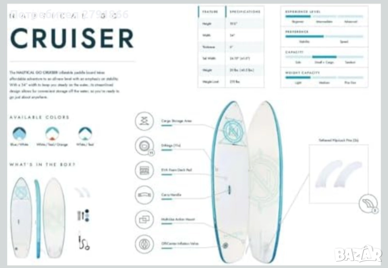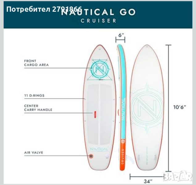 Надуваемата дъска за гребане Nautic Go Cruiser издига достъпните приключения на съвсем ново ниво, с фокус върху стабилността. С ширина от 34 инча, за да ви държи стабилни на водата, нейният аеродинамичен дизайн позволява удобно съхранение извън водата, така че сте готови да отидете почти навсякъде.