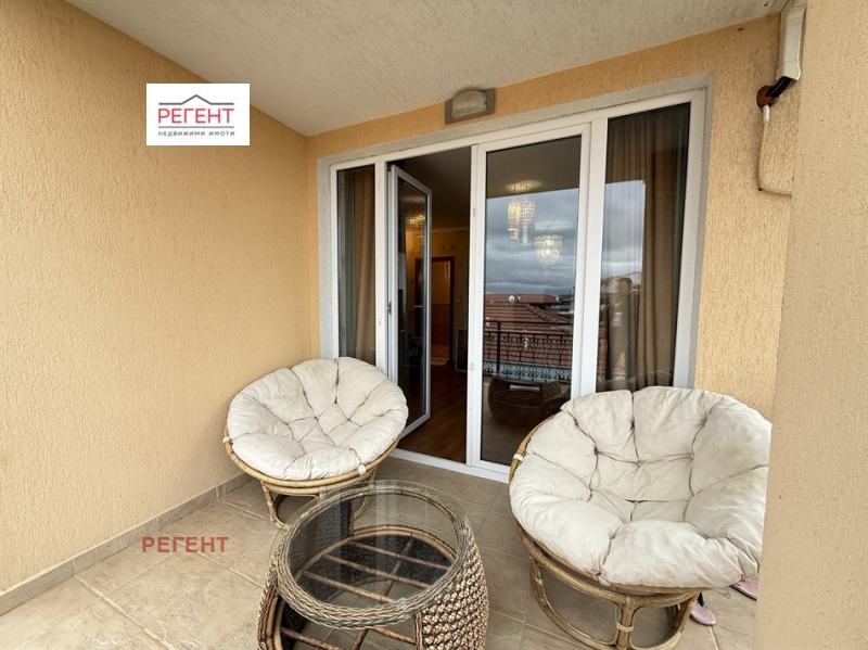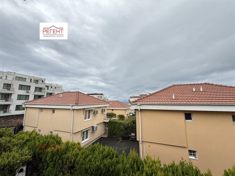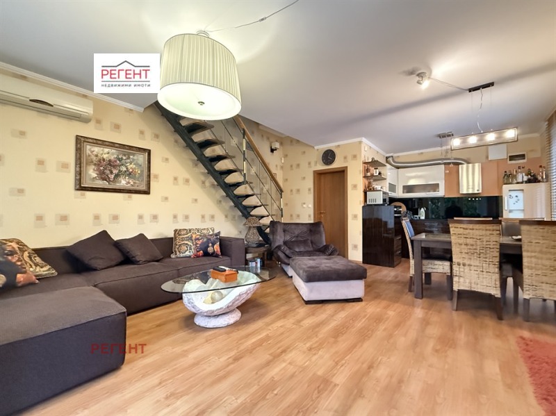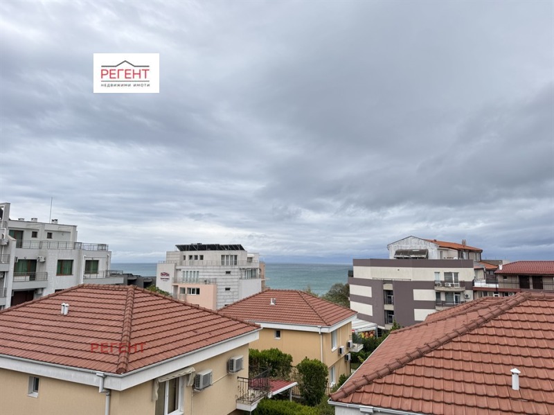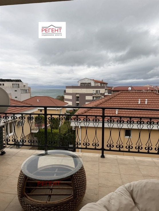 Първи етаж разполага с просторна всекидневна, която обединява кухненски бокс, трапезария и холна част. Това ниво е оборудвано с баня и тоалетна и предлага излаз към малък двор с веранда. Вътрешно масивно стълбище ни отвежда до второ ниво, където са разположени две просторни спални, обзаведени с всичко необходимо, санитарен възел и тераса с частична гледка море. Отново вътрешно стълбище свързва втори и трети етаж, където ще намерим разкошна родителска спалня със самостоятелен санитарен възел и прекрасна и много елегантна тераса с невероятна фронтална гледка море.Без такса подръжка .
