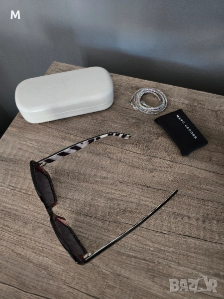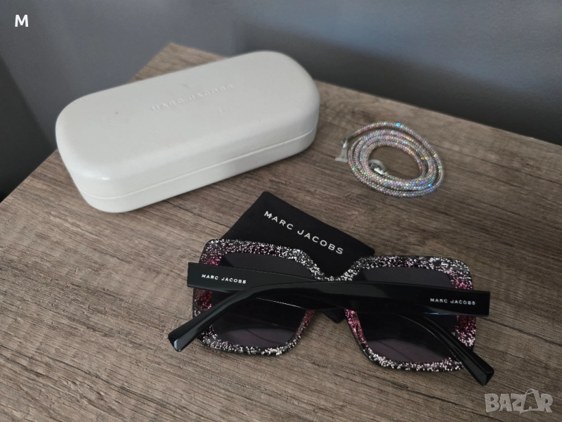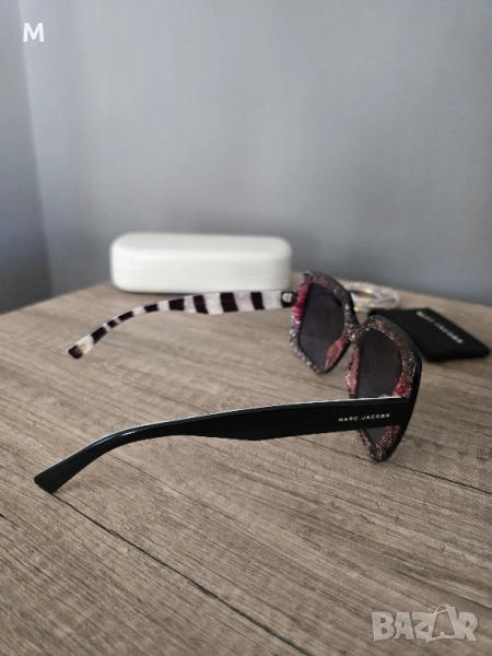 Уникални оригинални,дамски, слънчеви очила MARC JACOBS 230S. С твърд калъф за съхранение, кърпичка за почистване и подарък - нов аксесоар за очила с камъни. Очилата са без забележки. Уникален модел. Купувани за в пъти повече. Изпращам с преглед и тест преди заплащане.