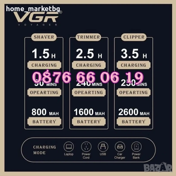 КОМПЛЕКТ Машинка за подстригване, самобръсначка и тример VGR 642 → Обява 52409142