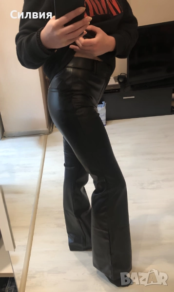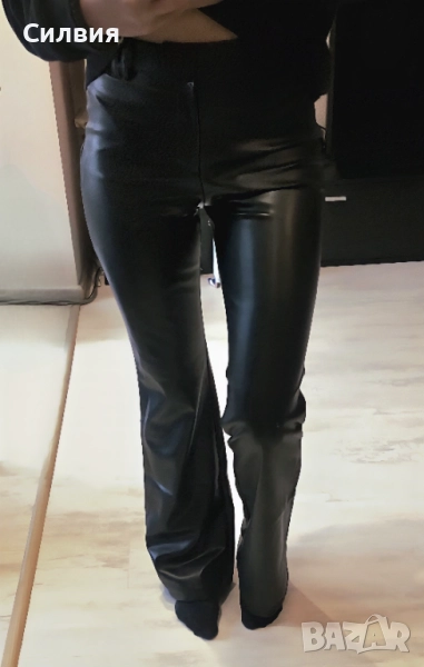 Чисто нов дамски черен лъскав кожен панталон "Zara" / "Зара", размер S → Обява 52409408