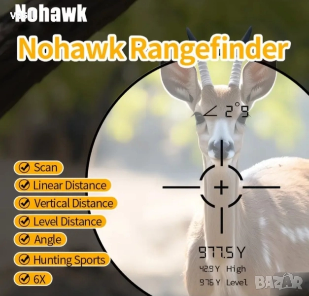 Лазерен Далекомер Nohawk NK-1000 - 1000м, 6X Увеличение, Акумулаторна Батерия, Камуфлаж