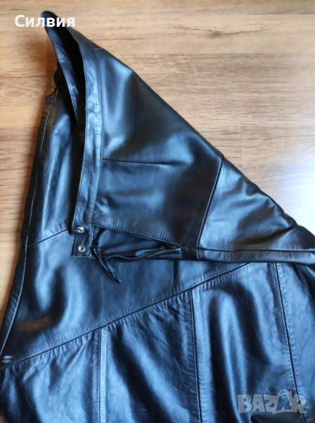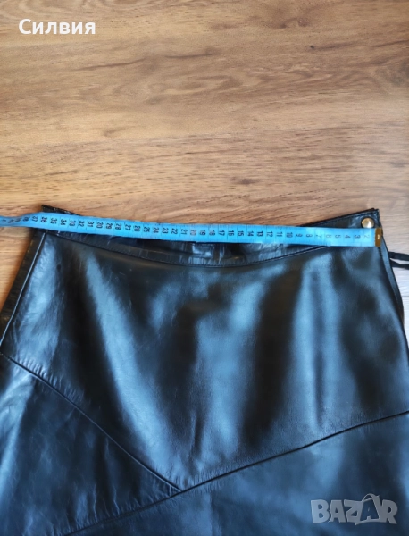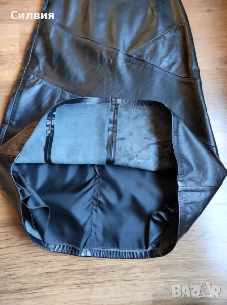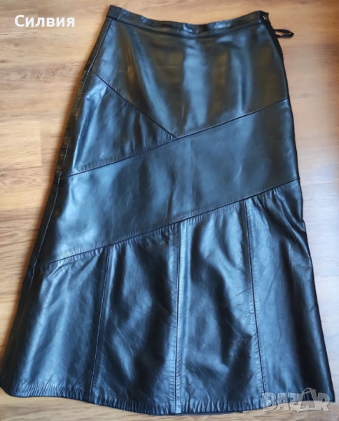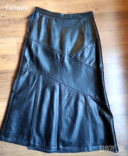 Дълга черна лъскава кожена пола от истинска естествена кожа, размер L → Обява 52409465