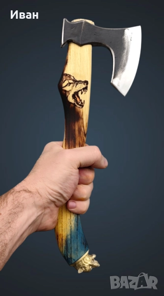 Брадва ръчна изработка вълк , топор , секира, → Обява 52409649