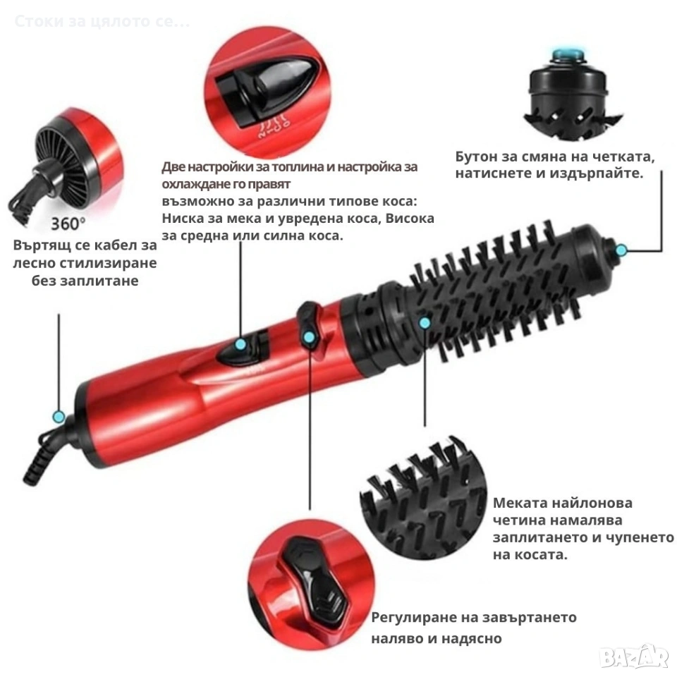 Професионална електрическа четка 3в1 за изправяне, къдрене и сушене, 1200W, автоматично въртене