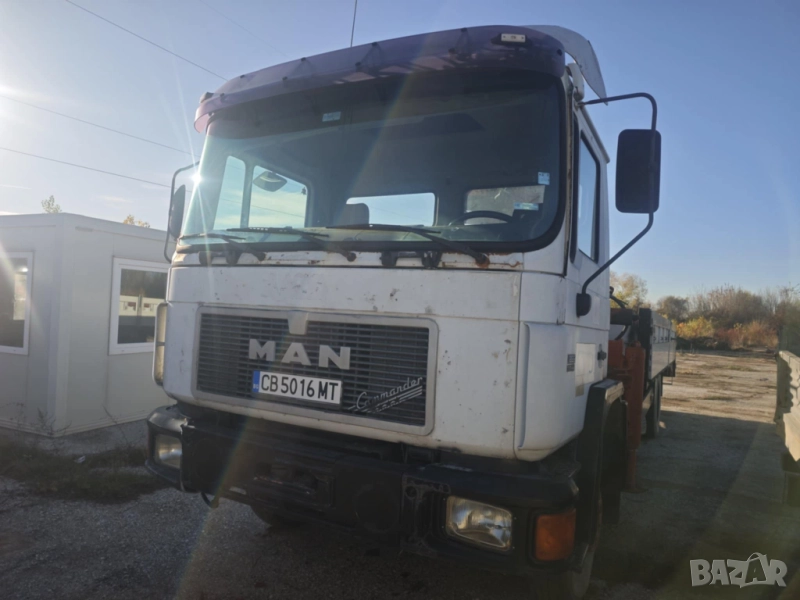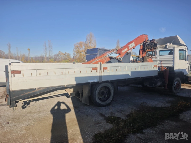 Ман 12.222 с кран Майлер 2.8 тона 12 метра и каросерия с пътеки за коли и техника → Обява 52409852