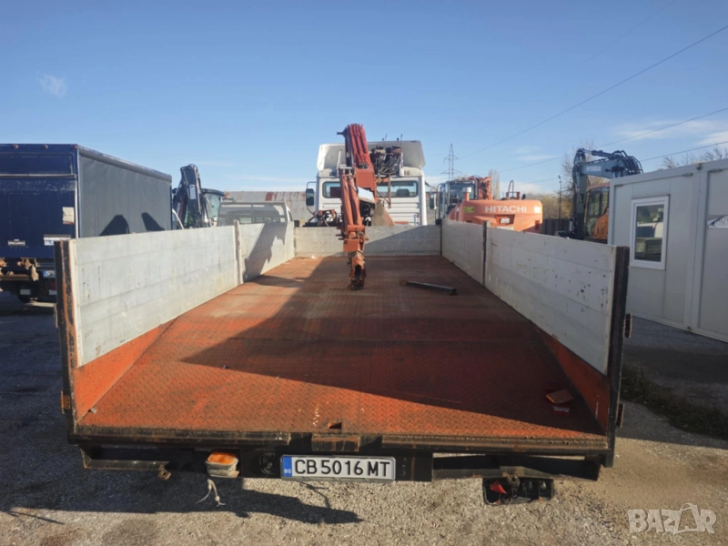 Бордови камион с каросерия и канати. Рампа скосена с пътеки за товарене на коли или строителна техника. 2 оси с кран Майлер 2800кг/12 метра. Добро сътояние. Всичко работи нормално. Крана е в изправност. Обслужен и добре поддържан. Нови гуми. Валидни застраховки.