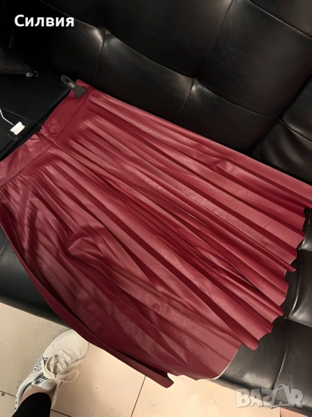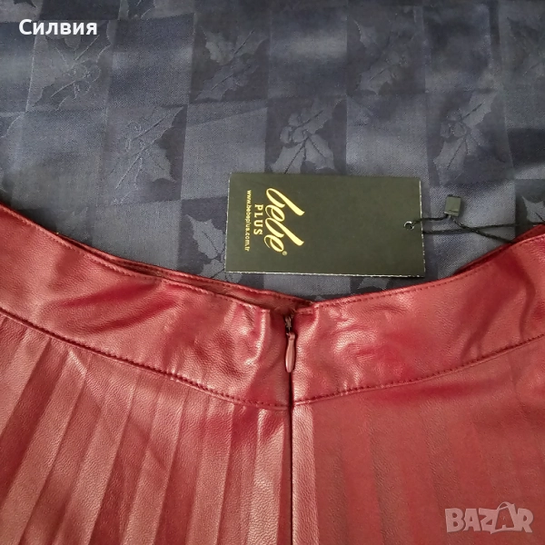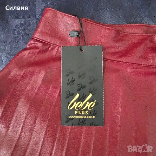 Нова червена кожена плисирана пола с етикет солей "Bebe Plus" М размер → Обява 52409865