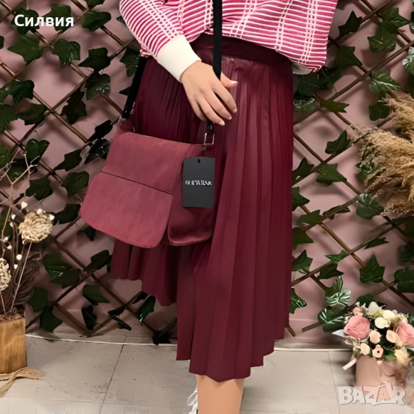 Продавам чисто нова дълга червена кожена пола "Bebe Plus" с етикет. Полата е плисирана и отговаря на размер "М". Ципът е отзад, а етикетът е отстрани. Кройката е страхотна, а кожата е първокласна. Дрехата е много лъскава, разтеглива и приятна на допир.
