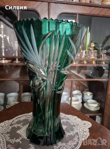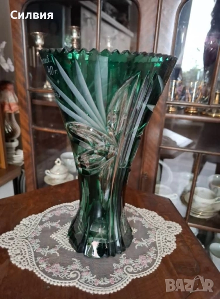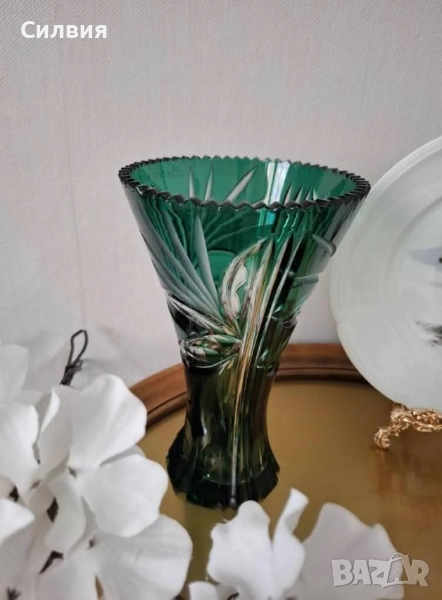 Елегантна ваза от масивен, тежък цветен кристал със стилен