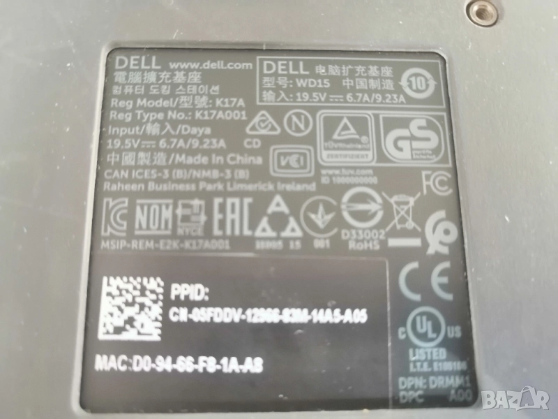 Докинг станция за лаптоп DELL K17A001 Dock WD15