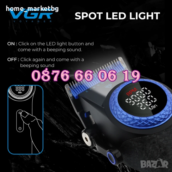 Безжична машинка за подстригване VGR 001, машинка за коса
