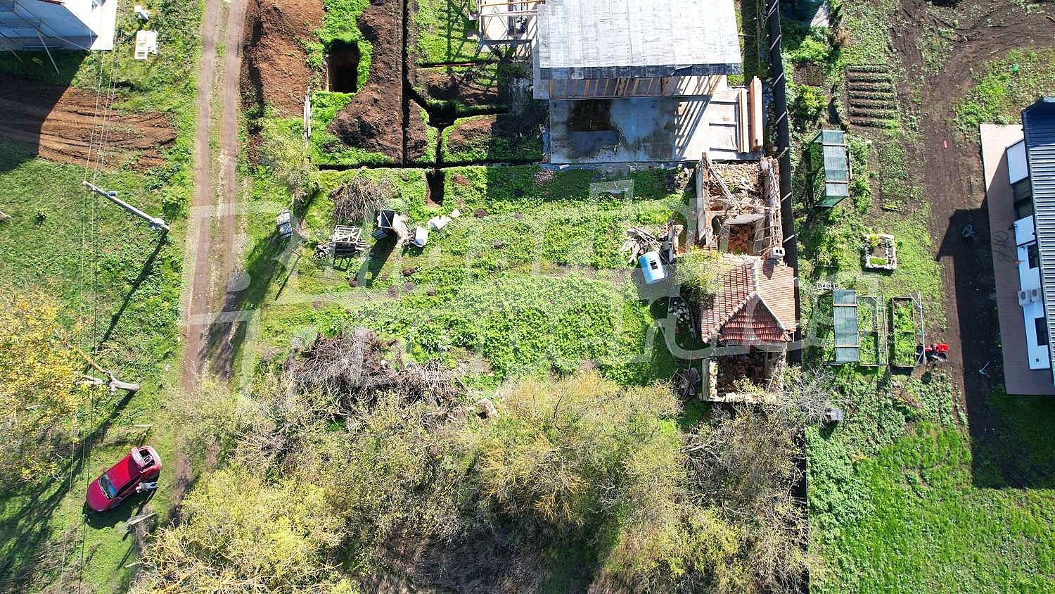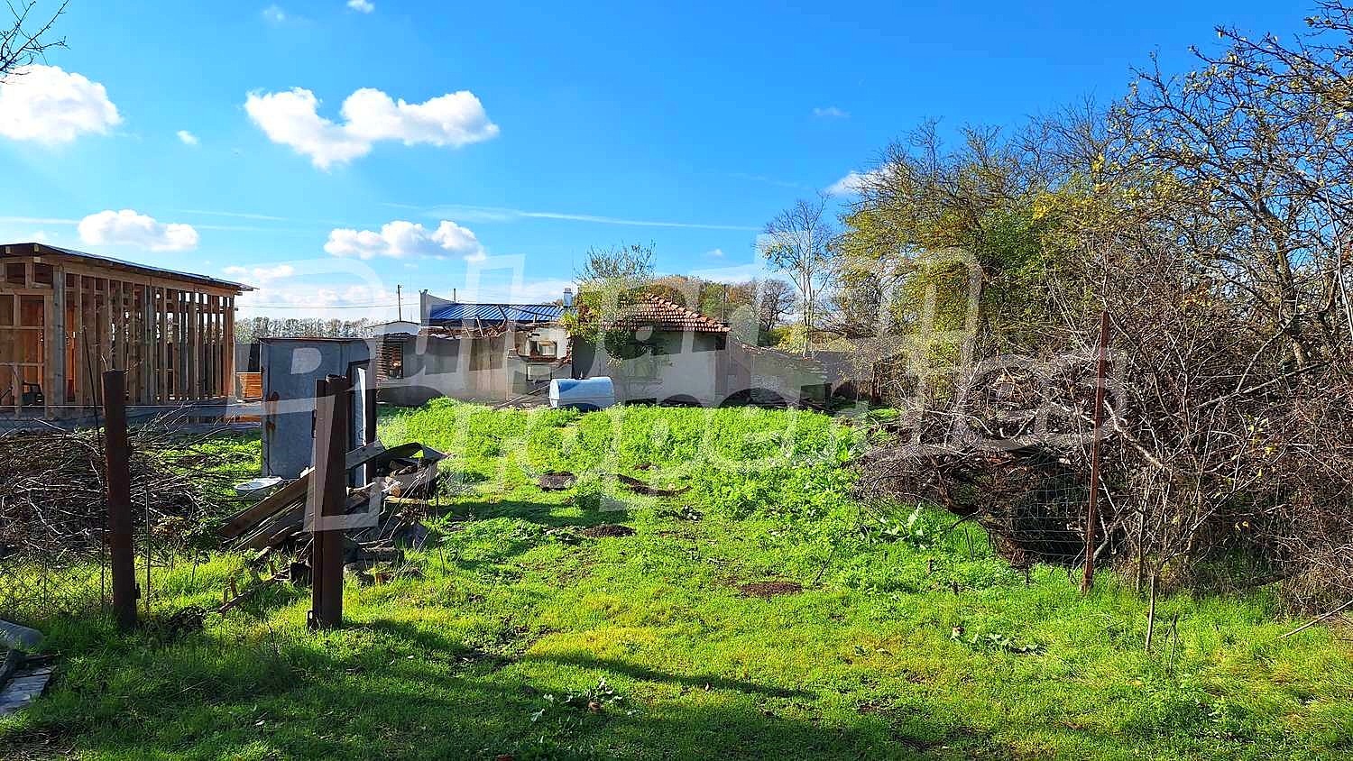 В имота има и къща, която съществува по документи, но е за събаряне. Парцелът разполага с партида за ток и вода.