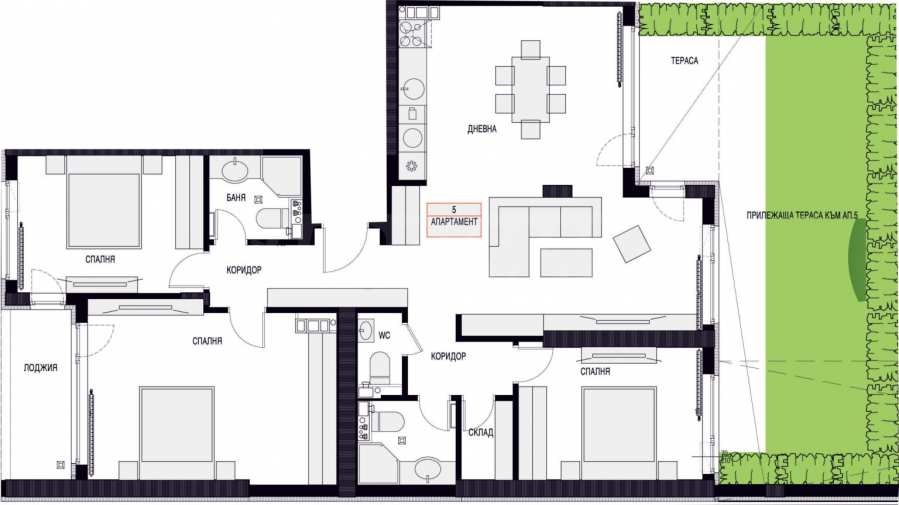 дневна с кухненски бокс и трапезария;