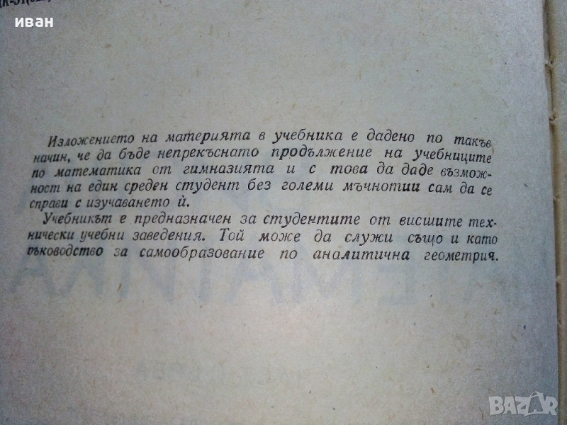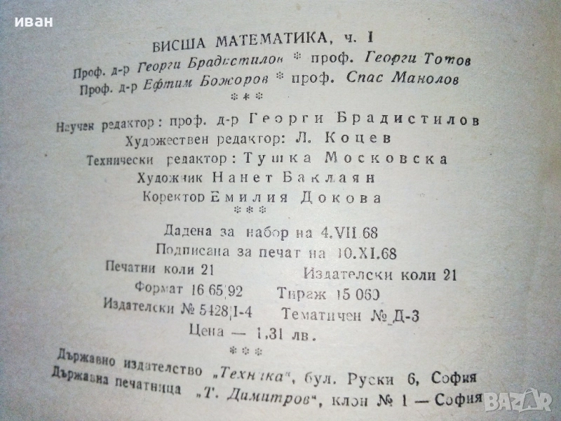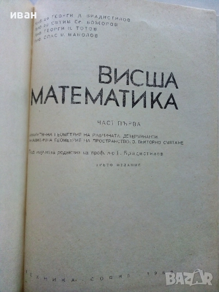 Висша Математика част 1 - Г.Брадистилов,Г.Тотов,Е.Божоров,С.Манолов - 1968г. → Обява 52411265