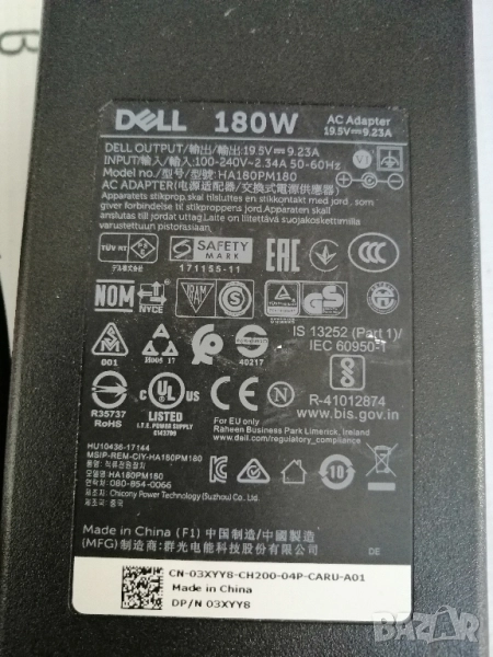 Оригинално зарядно за лаптоп DELL 180W, снимка 1 - Части за лаптопи - 52411300 Оригинално зарядно за лаптоп DELL 180W, снимка 2 - Части за лаптопи - 52411300 Оригинално зарядно за лаптоп DELL 180W, снимка 3 - Части за лаптопи - 52411300 Оригинално зарядно за лаптоп DELL 180W, снимка 4 - Части за лаптопи - 52411300 Оригинално зарядно за лаптоп DELL 180W, снимка 5 - Части за лаптопи - 52411300 Оригинално зарядно за лаптоп DELL 180W, снимка 6 - Части за лаптопи - 52411300 1/6