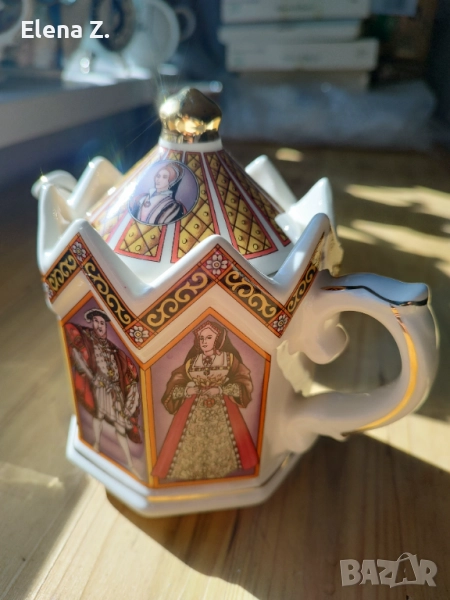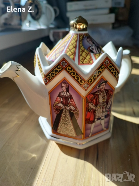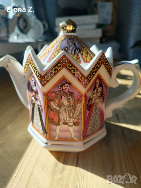 Британски ретро чайник на Sadler Хенри VIII от колекционерската серия на марката с британските монарси. Чайникът е с 8 страни, които идеално пасват за описване историята на крал Хенри VIII и неговите 6 съпруги.