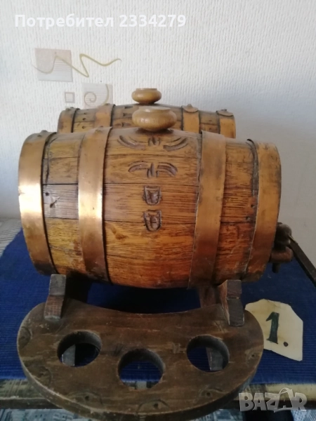 N:1 стари испански корабни буренца ръчна изработка дялано дърво, размери на буренцата 22х15х12см.,поставени на дървена всичко е в орнаменти дърворезби, цена 50€.; N:2 старо ръчно изработено дървено буренце, изцяло орнаментирано с дърворезби и рисунки размери: дължина 20х20см., ширина 17см., цена 18€.; N:3 стара ръчно изработена