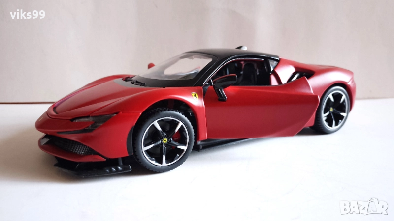 2019 Bburago Ferrari SF90 Stradale - Мащаб 1:24, (липсват 2 гуми и единия винт на дъното е скъсан) - 13 EURO