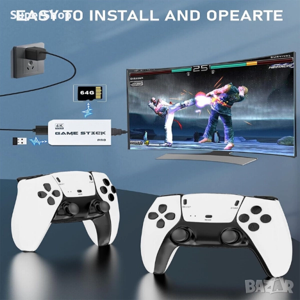 Най-нов модел 2024 - няма кабели и става за всички телевизори включително новите с HDMI - безжични джойстици тип Play Station 5.
