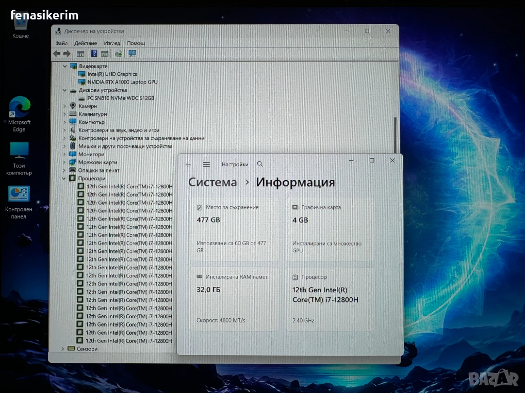 Лаптопа е в отлично визуално състояние, ползван само в офис, трудно различим от НОВ и е в безупречнa техническa кондиция. В комплект с оригиналното зарядно у-во. Батерията кара до 8 часа. Инсталиран Windows 11 Pro (64-бит), оригинален и лицензиран, закупен заедно с лаптопа.