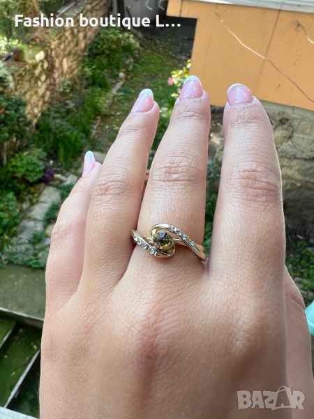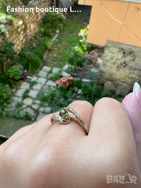 Златен пръстен с блестящи камъчета ❤️
