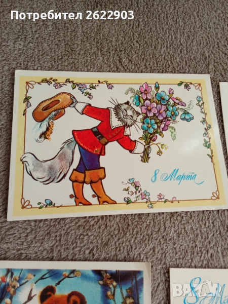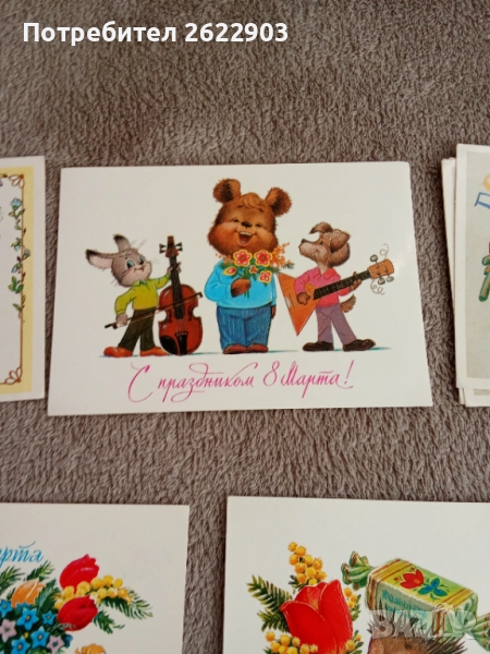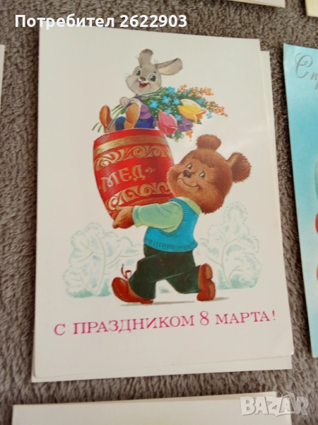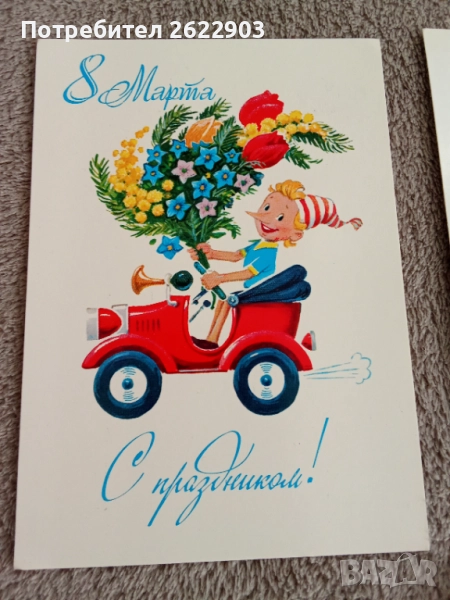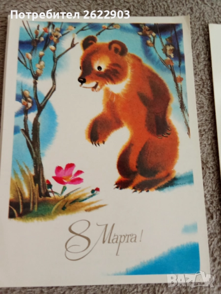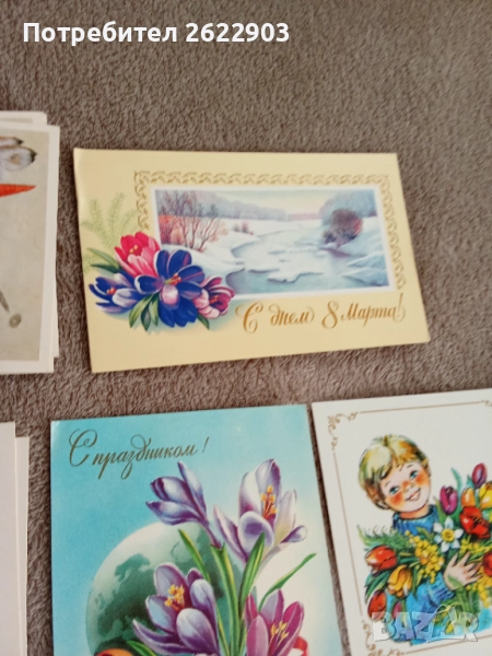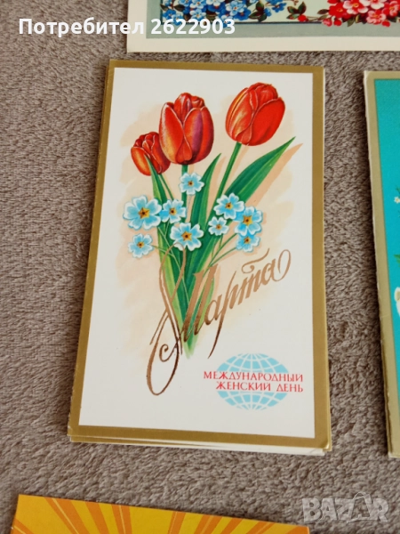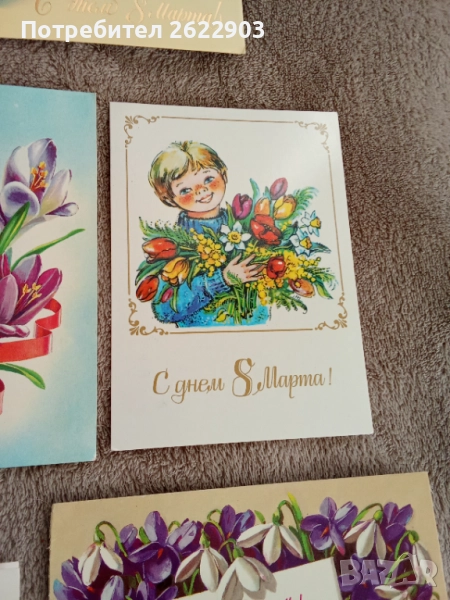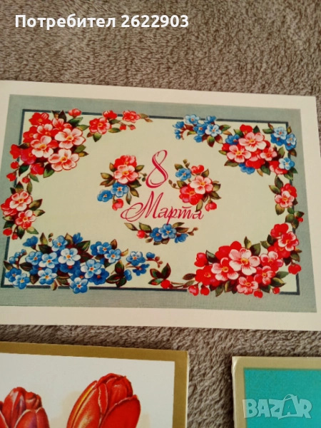 Руски поздравителни картички за 8-ми март, добро състояние.