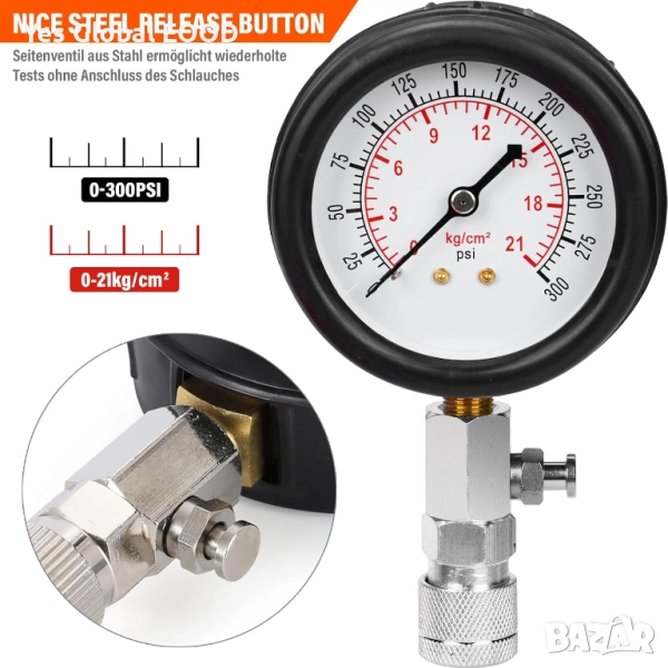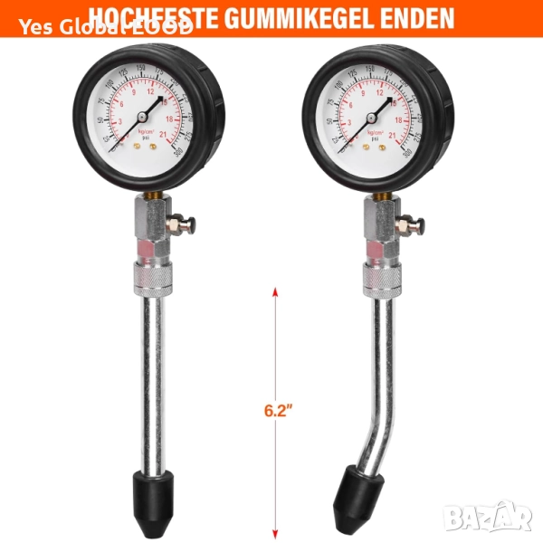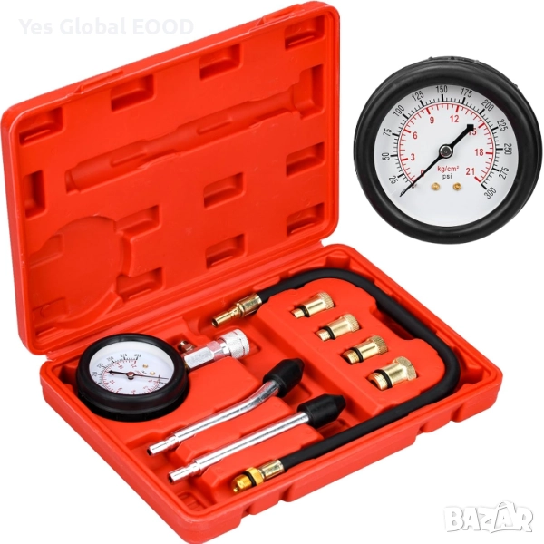 Компресионният тестер HATANSE е надежден инструмент за измерване на налягането в цилиндрите на бензинови двигатели. Подходящ за автомобили, мотори, камиони и други превозни средства, той позволява бърза диагностика на състоянието на бутала, сегменти и клапани. Манометърът измерва в диапазон 0–20 bar или 0–300 psi, а включените адаптери M10, M12, M14 и M18 осигуряват универсална съвместимост. Комплектът е удобен за професионална и домашна употреба, с здрав корпус и лесно четим циферблат.