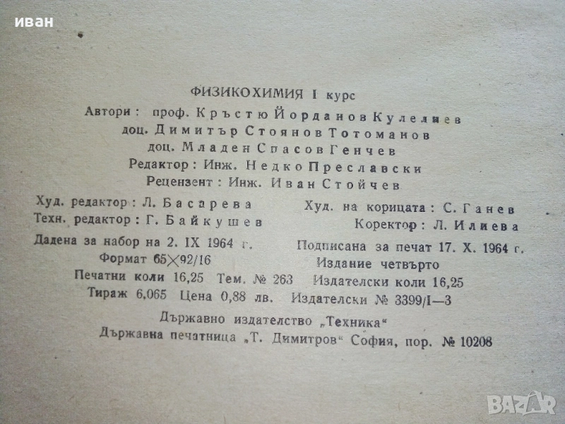 Физикохимия 1.курс - К.Кулелиев,Д.Тотоманов,М.Генчев - 1964г. → Обява 52413628