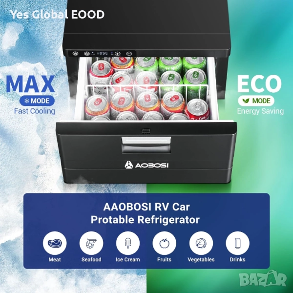 Чекмеджният хладилник AAOBOSI 31L е идеално решение за кемпери, бусове, камиони, SUV и дълги пътувания. Работи на 12/24V DC и поддържа температури от –20°C до +20°C, което позволява използване както като фризер, така и като хладилник. С удобен чекмеджен дизайн за лесен достъп и APP управление, устройството осигурява бързо охлаждане, ниска консумация на енергия и тиха работа. Подходящ за пътуване, къмпинг и работа на пътя.