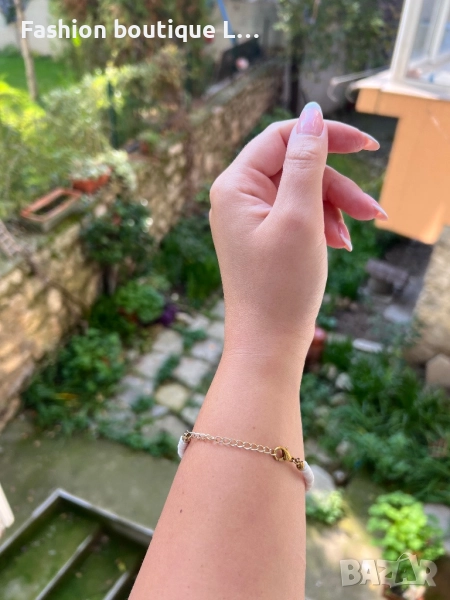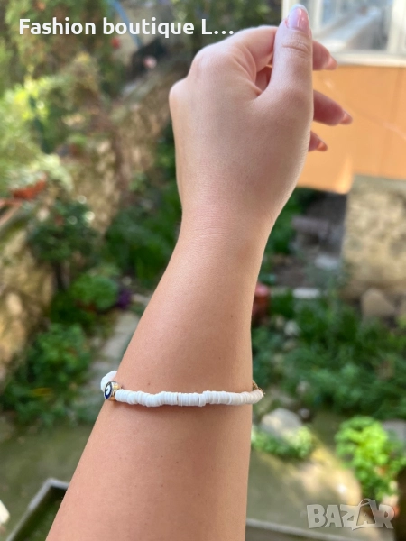 Гривна със синьо око против уроки с бели мидички и златиста закопчалка ❤️ → Обява 52413733