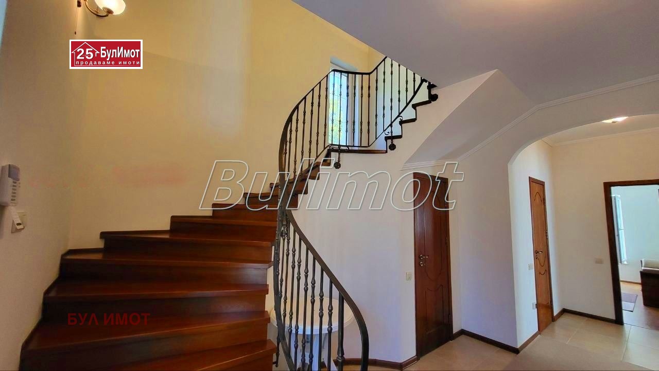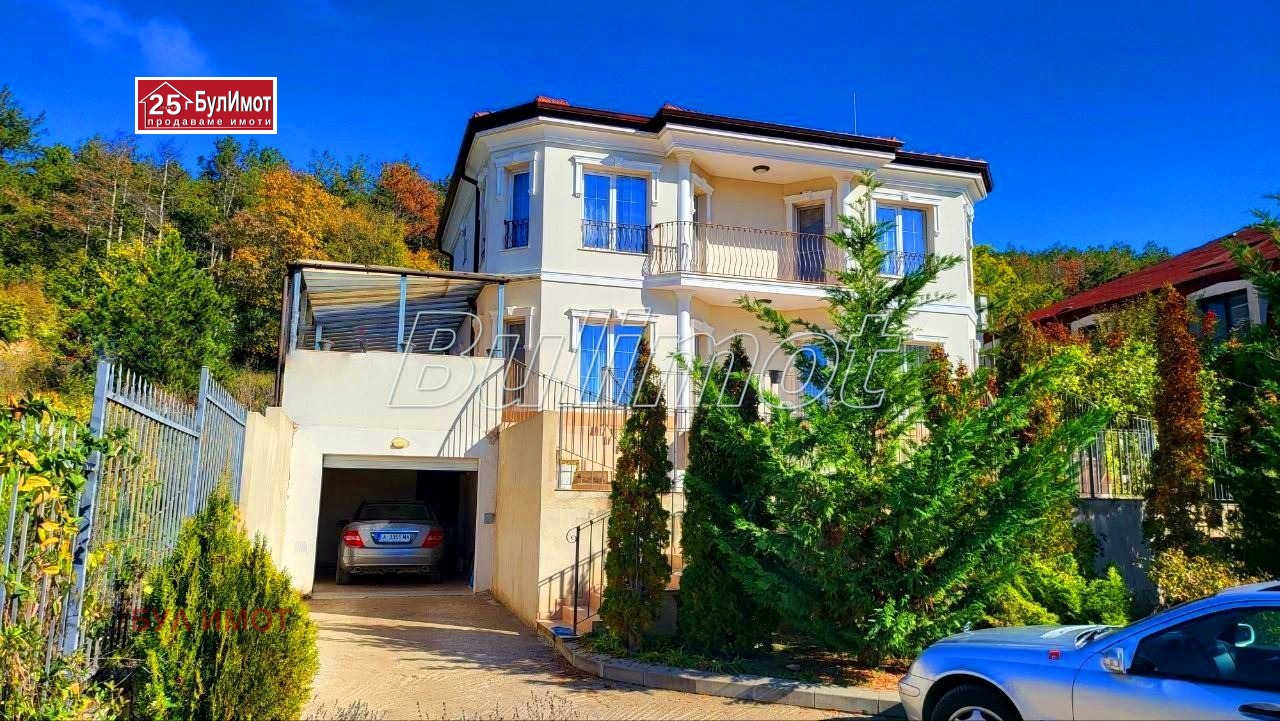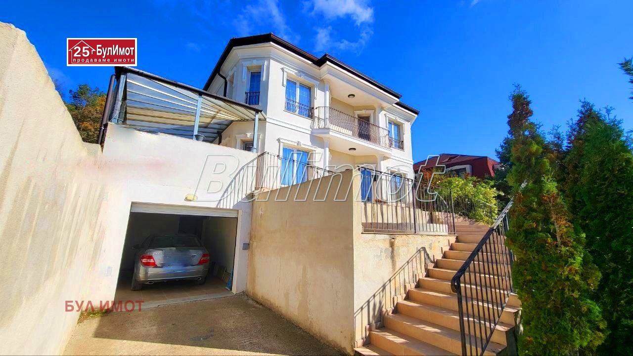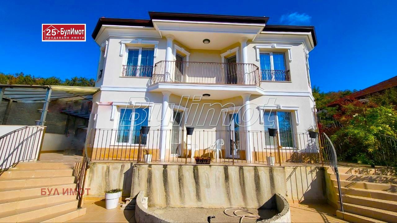 БУЛ ИМОТ предлага на Вашето внимание уютна двуетажна къща с РЗП 200 м² в живописната м-т Манастирски рид, гр. Варна. Построена и въведена в ескплоатация през 2016 г., с просторен двор 865 м², гараж 26 м² и паркинг 150 м². Къщата разполага с 3 спални, 3 бани, напълно оборудвана кухня, камина с локално отопление, климатици Daikin. Имотът е с трифазен ток, вода с резервоар, септична яма + централна канализация. Панорамна гледка към морето и града. Спокойно и озеленено място, подходящо за целогодишно живеене.