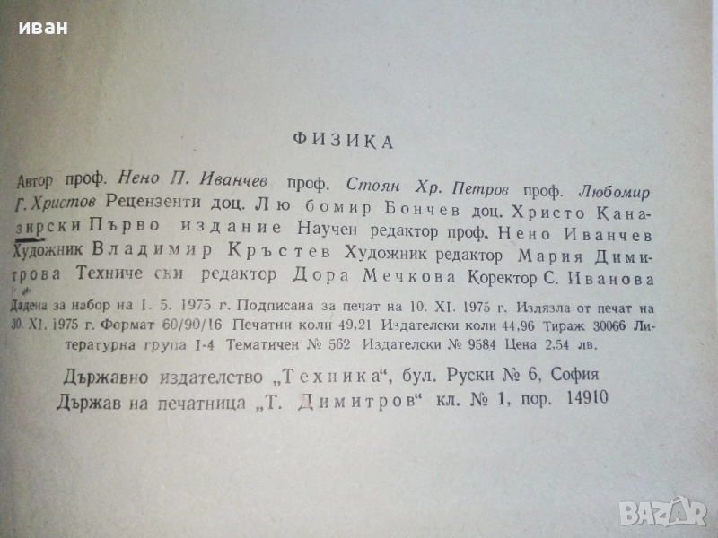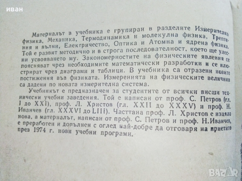 Физика - И.Иванчев,С.Петров,Л.Христов - 1975г. → Обява 52413847