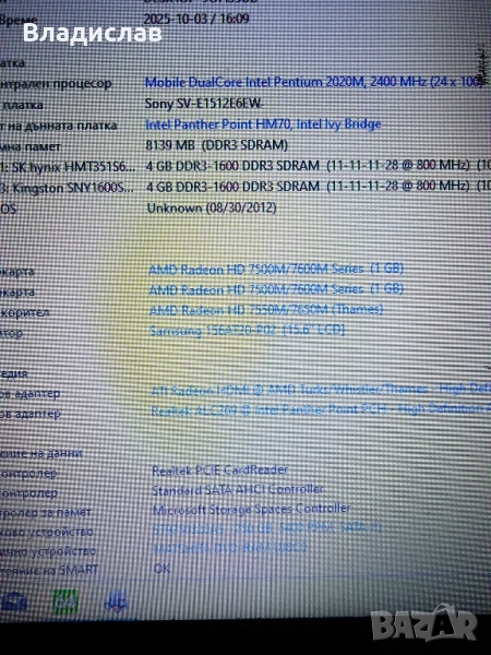 Sony Vaio SVE151G17M работещ цял или на части → Обява 52414144