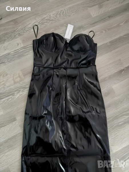 Нова черна лачена латексова дълга рокля "Shein" "Шейн" от лак размер M → Обява 52414148