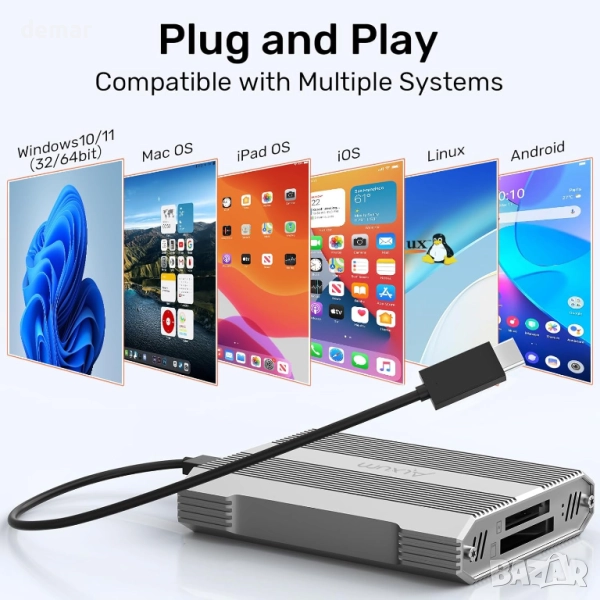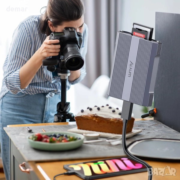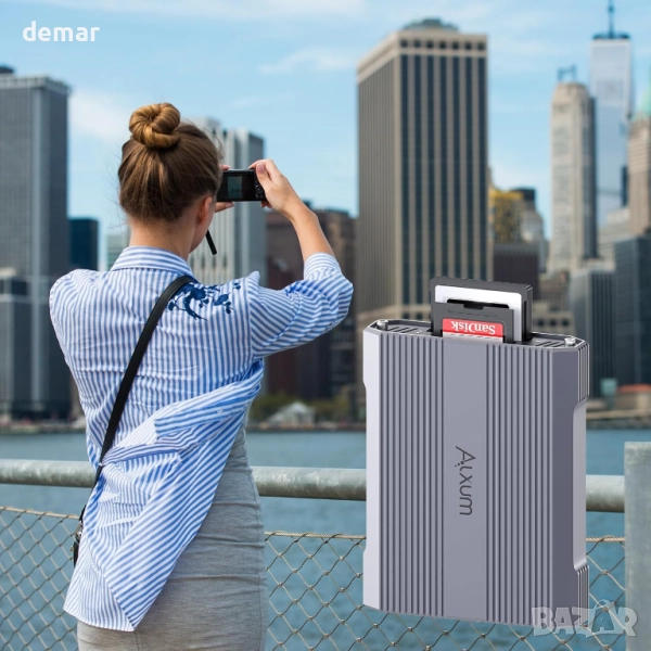 Този алуминиев четец на карти с два слота поддържа едновременно четене/запис на CFexpress Type A и SD карти, което позволява бързо прехвърляне между карти и безпроблемна работа с големи фото и видео файлове. Неговата USB-C 10Gbps връзка ускорява работните процеси за съдържание с висока резолюция, а широката съвместимост с устройства и операционни системи го прави универсален за лаптопи, таблети и смартфони с OTG. Здравият метален корпус подобрява разсейването на топлината за стабилна дългосрочна употреба, а вградената защита предпазва от свръхток, пренапрежение, късо съединение и прегряване.