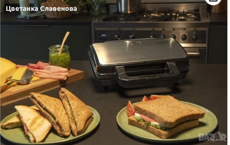 900-ватов XXL тостер за сандвичи, подходящ и за филийки препечен хляб по американски