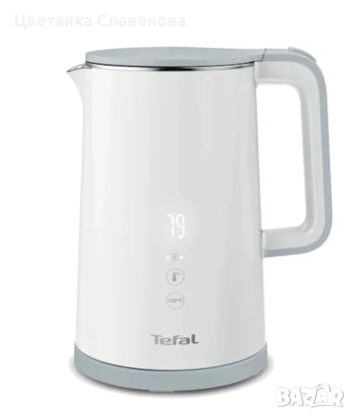 Насладете се на топли напитки с идеалната температура благодарение на каната Tefal Sense, с модерен дизайн и усъвършенствани функции. Тя има дигитален екран, който показва в реално време температурата на водата вътре, каната предлага диапазон от пет температурни настройки от 40°C до 100°C, идеална за завиране на водата за кратко време. Корпусът с двойни стени запазва топлината в уреда като същевременно, за повече безопасност, остава хладен при допир. Каната ще запази напитката ви топла до 30 минути благодарение на специална функция. Капакът е лесен за използване, с едно натискане на бутон за лесно отваряне и пълнене, а въртящата се на 360° основа и функцията за автоматично изключване предлагат лесна ежедневна употреба. Капацитетът от 1,5 л е идеален за всички ваши любими напитки.
