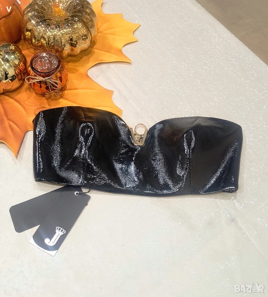 Секси черно лачено бюстие Junona Юнона топ риза блуза боди панталон кожен клин