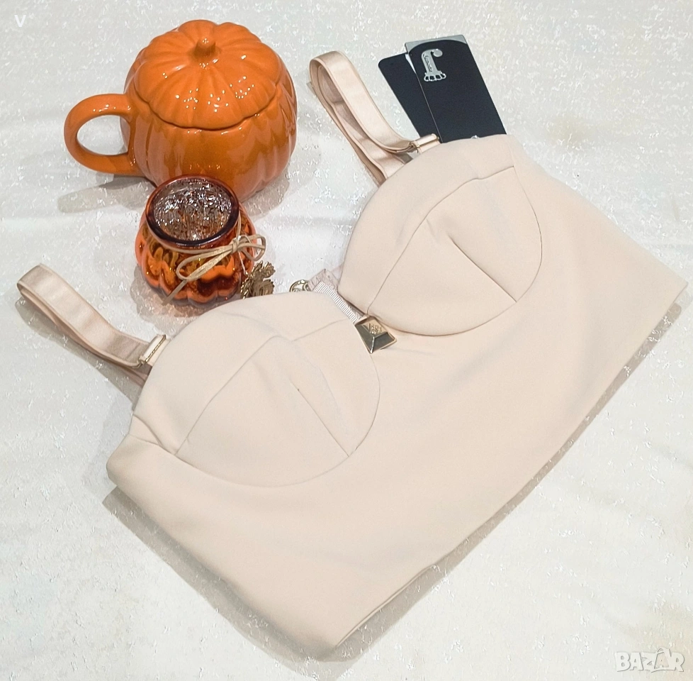 Секси черно бюстие с красив принт от вътрешната му страна и удобен цип на гърба. Идеално за весели поводи и празници. Размер М, 89 лв в сайта, моята цена е 15€. Изпращам с преглед и тест в оригинална опаковка.