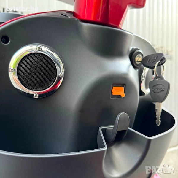 -ъгъл на изкачване: 17°, - Пълна светлинна окомплектация : мощен преден LED фар с къси и дълги светлини - задни луксозни стопове - луксозни мигачи - клаксон - аварийни - луксозна кожена седалка с вдигащи се подлакътници, завъртаща се на 360 градуса - регулация на височината и наклона на седалката - задно помощно колело против преобръщане - регулация на скоростта чрез потенциометър - ЛСД чветен дисплей нов модел, замерващ 5 параметъра (скорост, батерия, пробег, напрежение и други) - USB порт за зареждане на мобилни устройства ; Зарядно: включено в комплекта ; БЕЗПЛАТНО - голям преден куфар за багаж 1бр. - задна пластмасова кошница за пазар 1бр. - комплект огледала за задно виждане 2бр.
