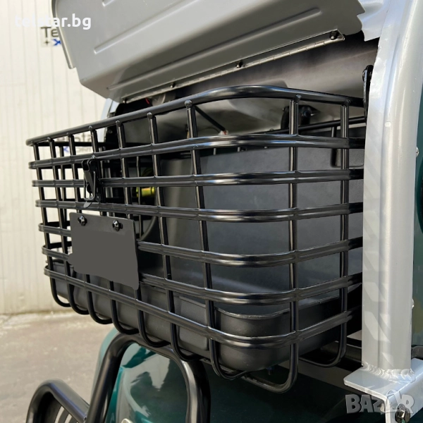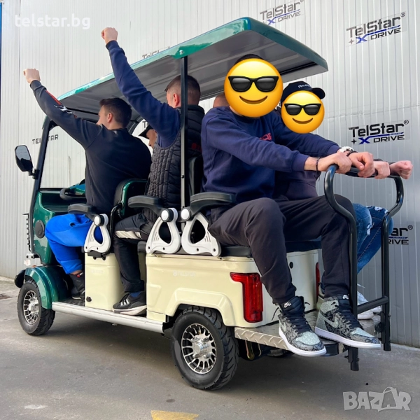 -Удобен волан, задно предаване, с диференциал - брой места: 6 - местна, спирачна система: 1 крачна и 2 ръчни спирачки за по-удобно спиране - павна регулировка на скоростта с потенциометър 5км/ч-50км/ч + задна скорост - аварийни светлини - странични светлоотразители - пълна светлинна окомплектовка ( преден двоен LED фар тип ЛУПА , мигачи- предни, задни, стопове, габарити) - клаксон - голяма метална кошница за багаж отпред и луксозна пластмасова кошница за багаж отзад - Подарък- 2 бр. огледала за задно виждане + 2бр. дистанционни с аларма и безконтактно включване + предна пазарска кошница за пазаруване + ГОЛЯМИ карго отделения под седалките за багаж