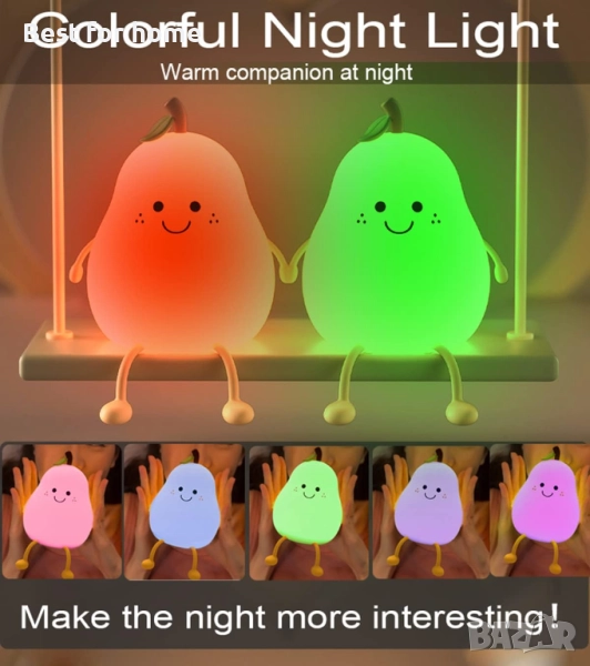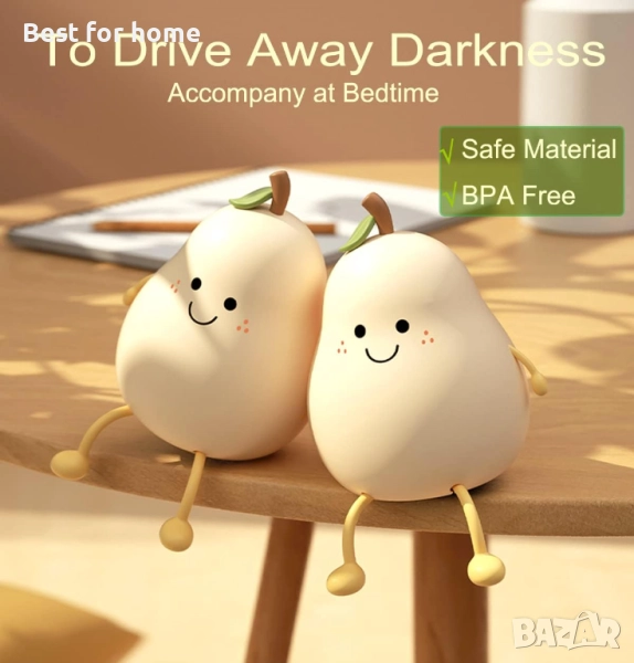 HAPPYBAG Сладка силиконова нощна лампа за деца, димируеми лампи за детска стая с круша, каваи декорация за стая с плодове, нощна лампа за бебе и малко дете.