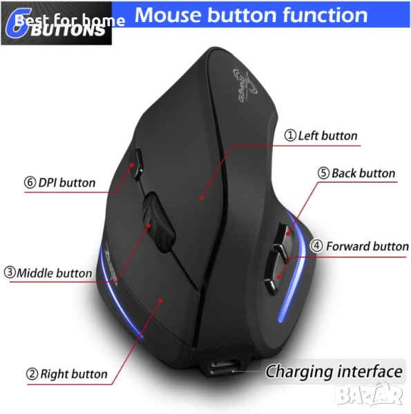 【Широка съвместимост】Преносимата мишка е съвместима с Win11, Win10, Win8, Win7 и Mac OS. Вертикалната мишка е най-добрият избор за хора, които използват компютри за продължителни периоди от време.