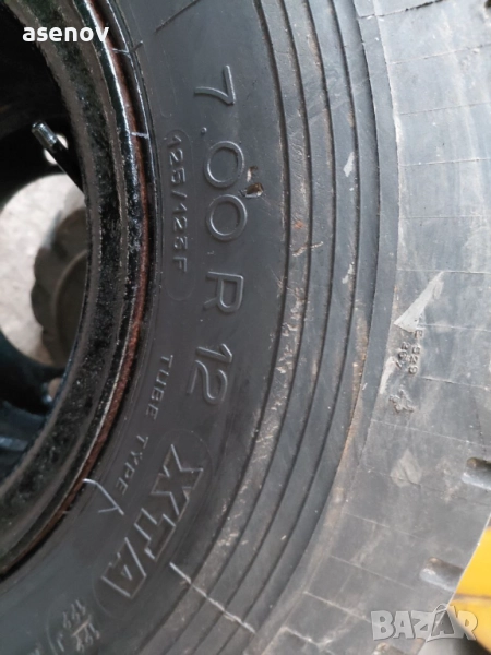 Продавам гуми 7×12 с джанти, предни, подходящи за мотокар Рекорд 1 (трицилиндров).