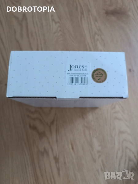 Касичката на Jones Home & Gifts носи знак за етична търговия. DOBROTOPIA, на свой ред, дарява за добра кауза част от печалбата от всеки продаден артикул.