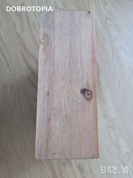 Касичката е изработена от МДФ, стъкло и метал. Моля, обърнете внимание, че поради естеството на материала МДФ, са възможни дребни несъвършенства. Те не влияят на функционалността на продукта.